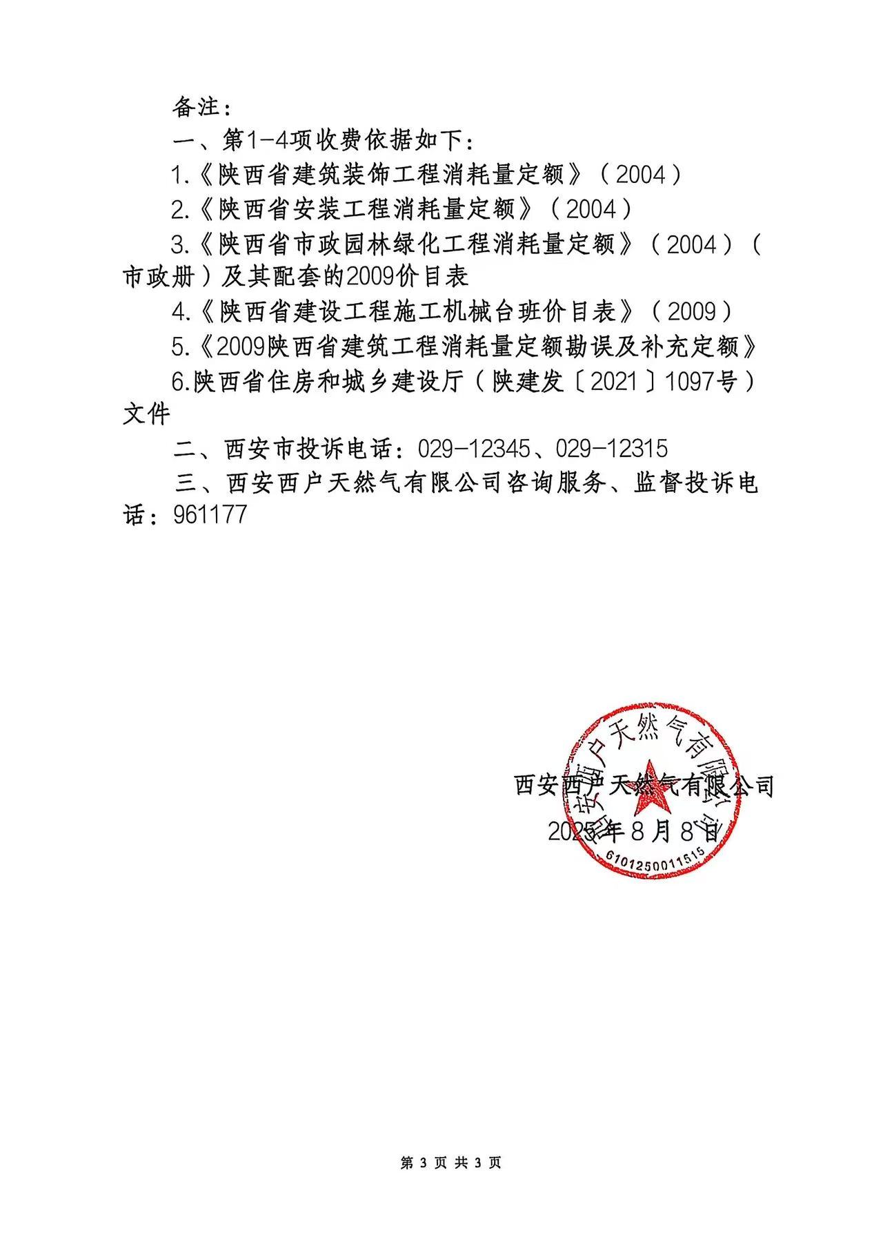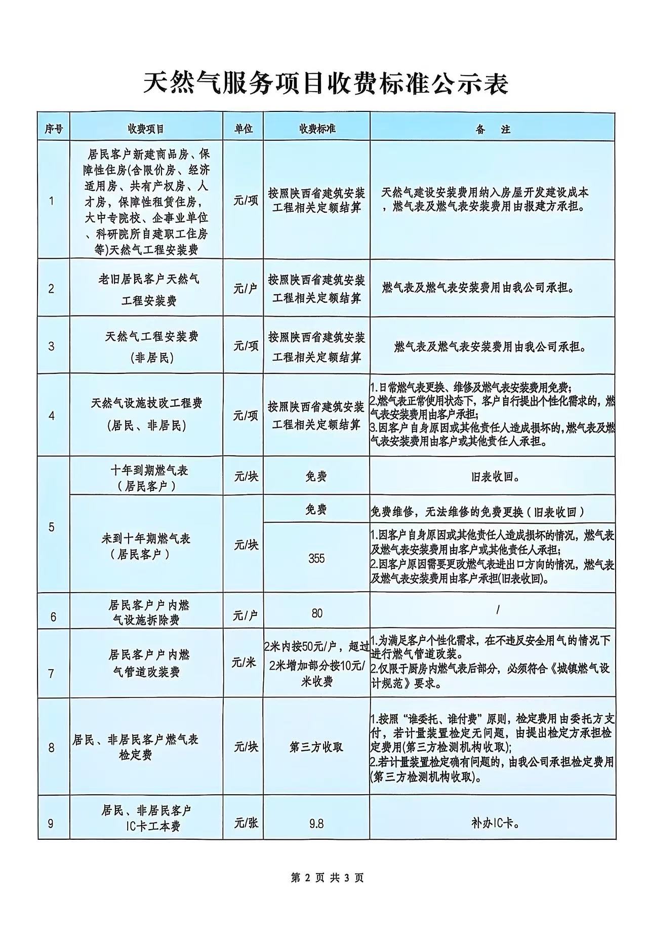 西安市天然氣價(jià)格公示,天然氣服務(wù)項(xiàng)目收費(fèi)標(biāo)準(zhǔn)公示